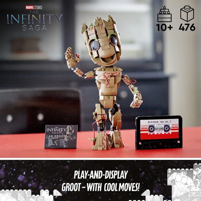 • Join the Action – The fully jointed Groot buildable toy is easy to position and comes with a pretend cassette to recreate the famous Baby Groot dancing scene