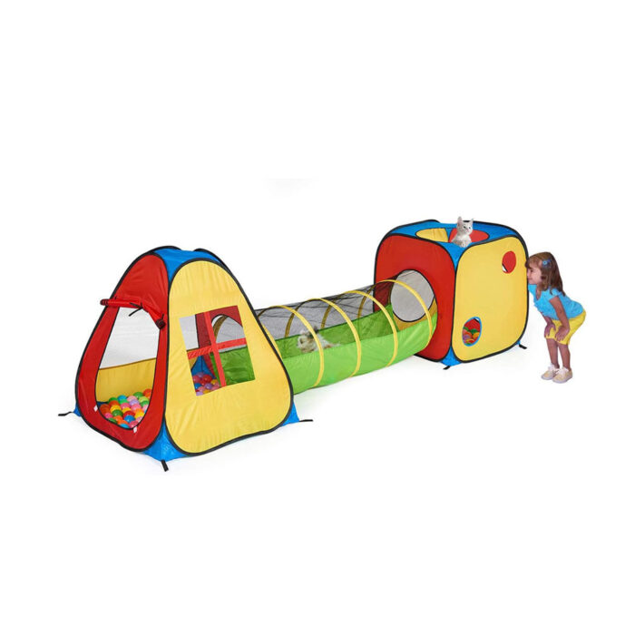 • The play tent and ball pit set features mesh ‘windows’ provide ventilation and peek-a-boo opportunities, two small holes on the square tent and long tunnel to provide lots of play opportunities.